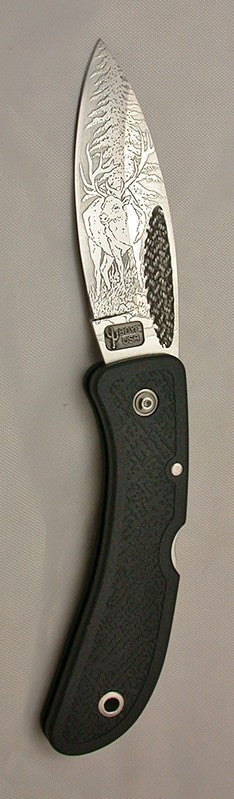 Boye Basketweave Lockback Folding Pocket Knife with 'Wapiti Elk' Etching.