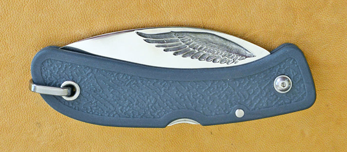 Boye Cobalt Eagle Wing Lockback Folding Pocket Knife with Blue Handle.