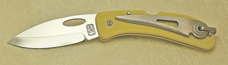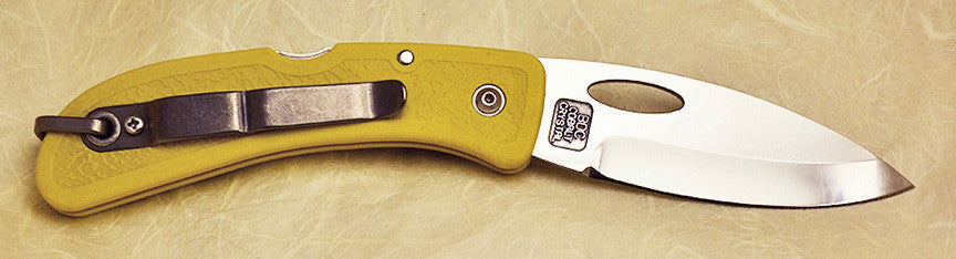Boye Cobalt Open Thumb Hole Lockback Folding Pocket Knife with Yellow Handle & Marlin Spike.