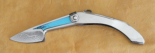 Boye Mini-Tweezerlock Folding Knife with 'Celtic Horse' Etching & Turquoise Inlay.