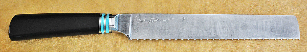 8 inch Bread Knife with 'Tsunami' Etching and African Blackwood Handle.