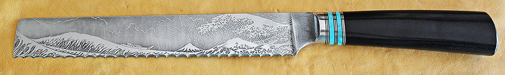 8" Bread Knife with "Tsunami" design by Hokusai, adapted by Francine.