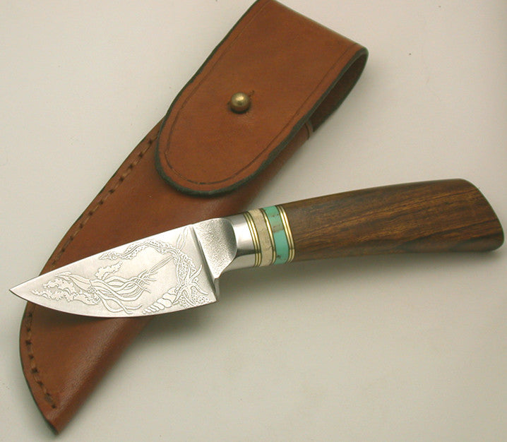 3 inch Dropped Edge Utility Knife with 'Squid and Starfish' Etching.